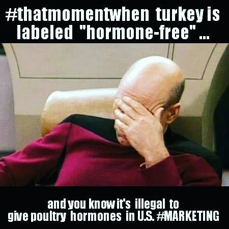 The Labels on Turkeys can be confusing. Sometimes manufacturers will label their turkeys as "hormone-free and free-range" which sounds great and worth the $5/lb more until you find out that by Law and regulated by the USDA, ALL turkeys are free-range and hormone-free! Here are what the labels REALLY mean: